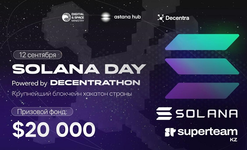 12 сентября 2025 года Казахстан примет крупнейший блокчейн-хакатон — Solana Day powered by Decentrathon. Мероприятие пройдет одновременно в 20 городах страны. Регистрация бесплатная и открыта на платформе Astana Hub до 11 сентября.